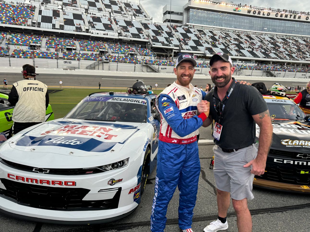 Logan Leslie (right) pictured with NASCAR driver CJ McLaughlin