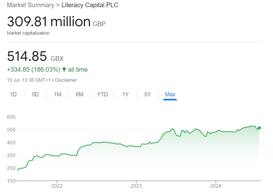 Literacy is a closed-end investment company focused on the UK. Beyond investing, it has a charitable angle, donating 0.9% of net assets every year to literacy charities. The company is independently owned and managed. It invests across all sectors, provided the financial metrics are strong, the business is understandable, and the firm can add value.