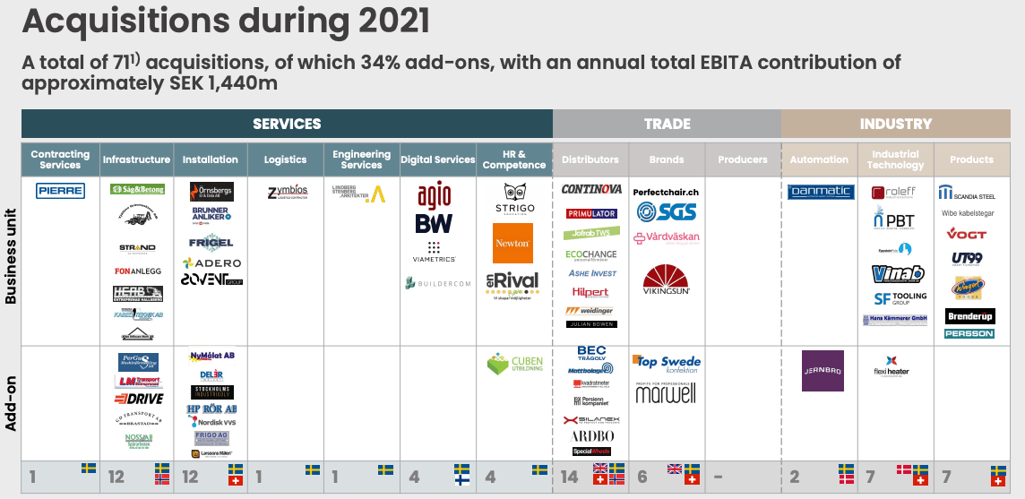 Storskogen’s M&A playbook is best illustrated by the following screenshot (source). If you squint, you can spot gems like: