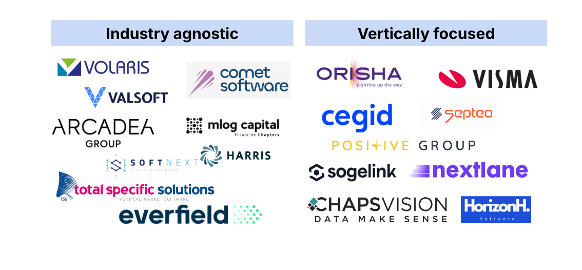 And that’s before we discuss the more verticalised aggregators like Orisha (ex DL Software, ERP focus, owned by Francisco Partners) or Septeo (LegalTech, owned by HgCapital). Finally, French family offices have been very active on the smaller end of the market, frequently outbidding institutional competitors.
