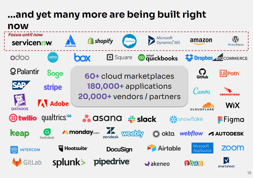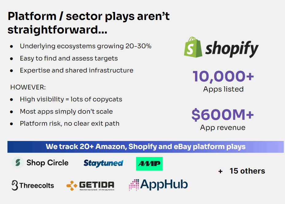 By plugging into large, and growing enterprise ecosystems like Shopify, Salesforce or Atlassian, software businesses gain access to distribution at scale