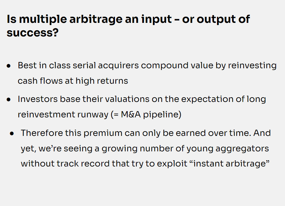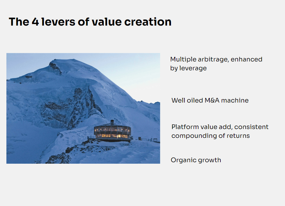 Let’s start with the first value driver: multiple arbitrage, enhanced by leverage