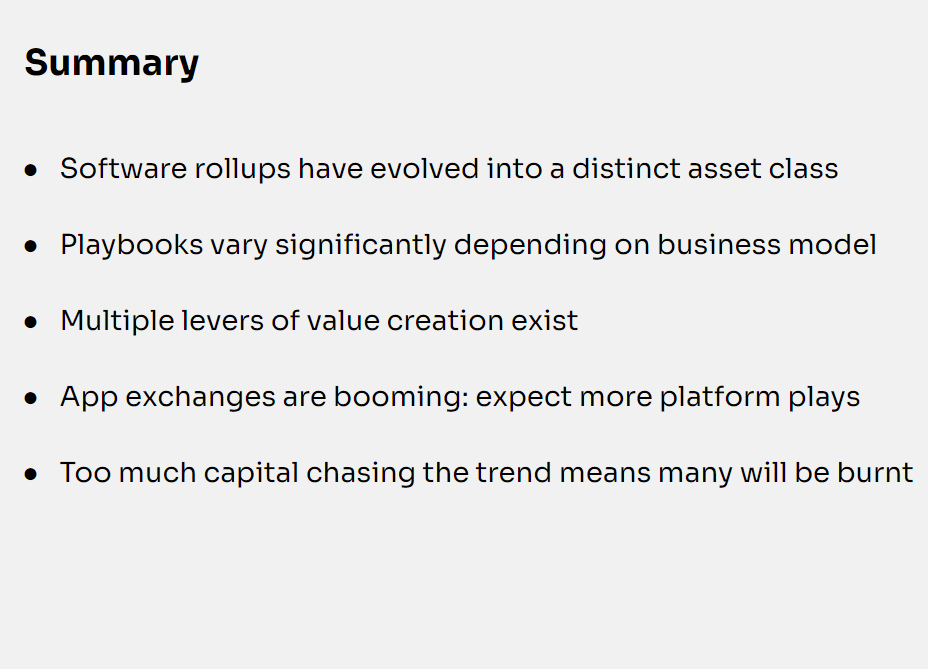 - Which software rollups are going to succeed?