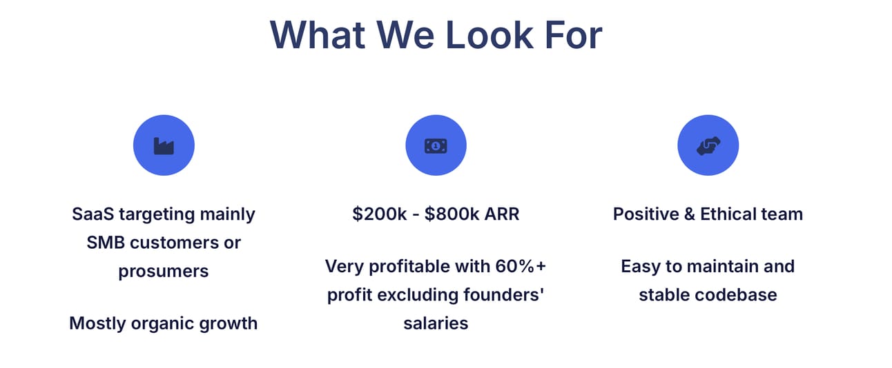Noosa Labs targets SaaS businesses $200-800K ARR and profit margins (SDE) north of 60%+. Originally, Pascal had thought he would be buying $10,000 MRR businesses. After he realized there much not much margin of error at that scale, he moved up. The first four acquisitions all came from a marketplace.