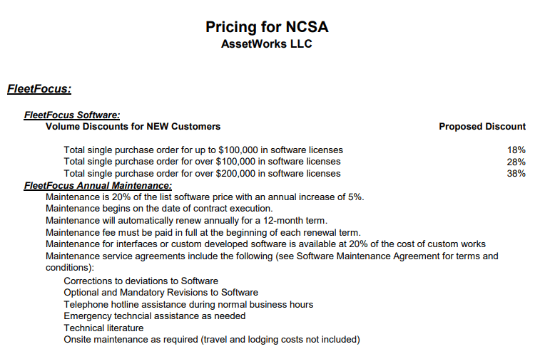 A real pricing sheet from AssetWorks LLC, a CSU subsidiary