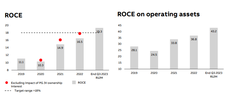 Secondly, ABB announced that goodwill will now be carried by each operating division. This should considerably reduce the gap between Operating ROCE and Group ROCE, and allow for more informed capital allocation.