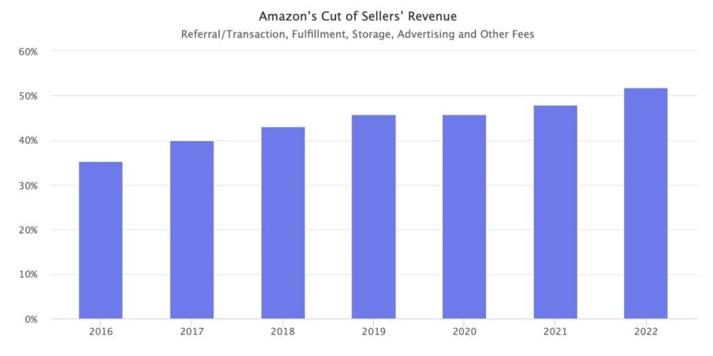 As a % of sales, Amazon FBA fees have increased 1.5X in the last 6 years (Source: Marketpulse.com)